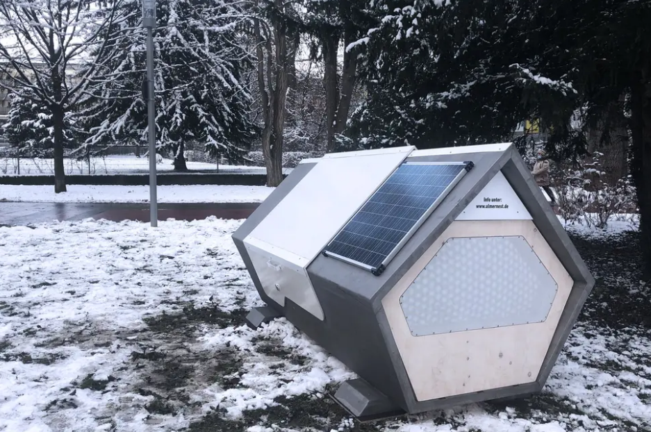 أخبار المانيا- ركّب متطوعون كبسولات نوم مقاومة للرياح ومقاومة للماء في شوارع مدينة المانية لإيواء المشردين.