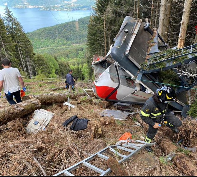 و أفادت صحيفة”كورييري ديلا سيرا” الإيطالية، أنه كان في عربة التلفريك 15 راكباً وأدى انقطاع الكابل إلى سقوطها في أسفل الغابة .
