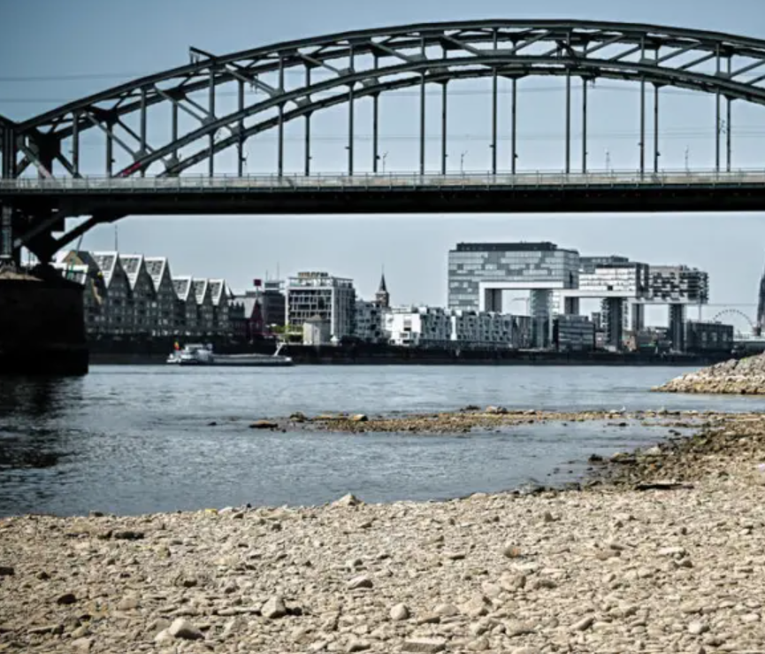 أفادت مؤسسة بحثية ألمانية، أنّ ارتفاع درجات الحرارة الشديد في فصل الصيف وانخفاض هطول الأمطار أدى إلى انخفاض وشح في مستوى مياه نهر الراين ، حيث وصل في بعض الأماكن إلى 38 سم فقط من قاع النهر.