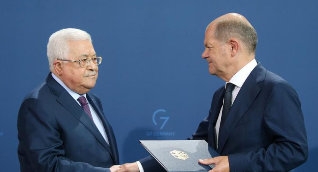 أشار  المستشار الألماني “أولاف شولتز” خلال اجتماعه مع الرئيس الفلسطيني “محمود عباس” في برلين إلى أنّ الوقت الآن غير مناسب للدعوة إلى الاعتراف الكامل بدولة فلسطينية.