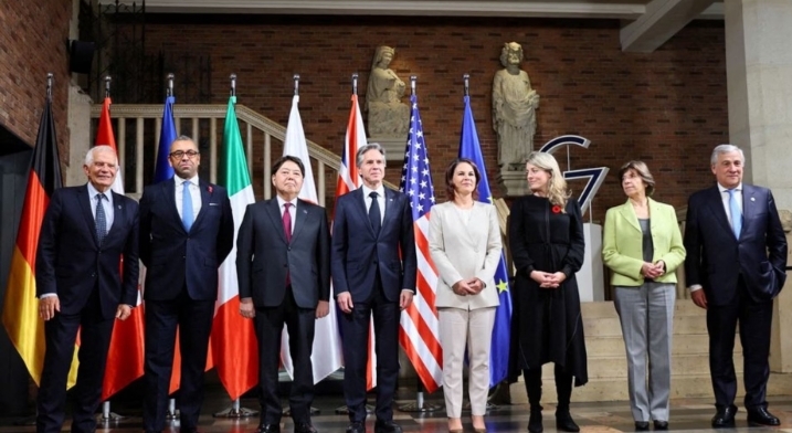 تشاور وزراء خارجية الدول الكبار في اجتماع الدول السبع G7 في ألمانيا، اليوم الجمعة حول العواقب الدولية للحرب العدوانية الروسية على أوكرانيا.