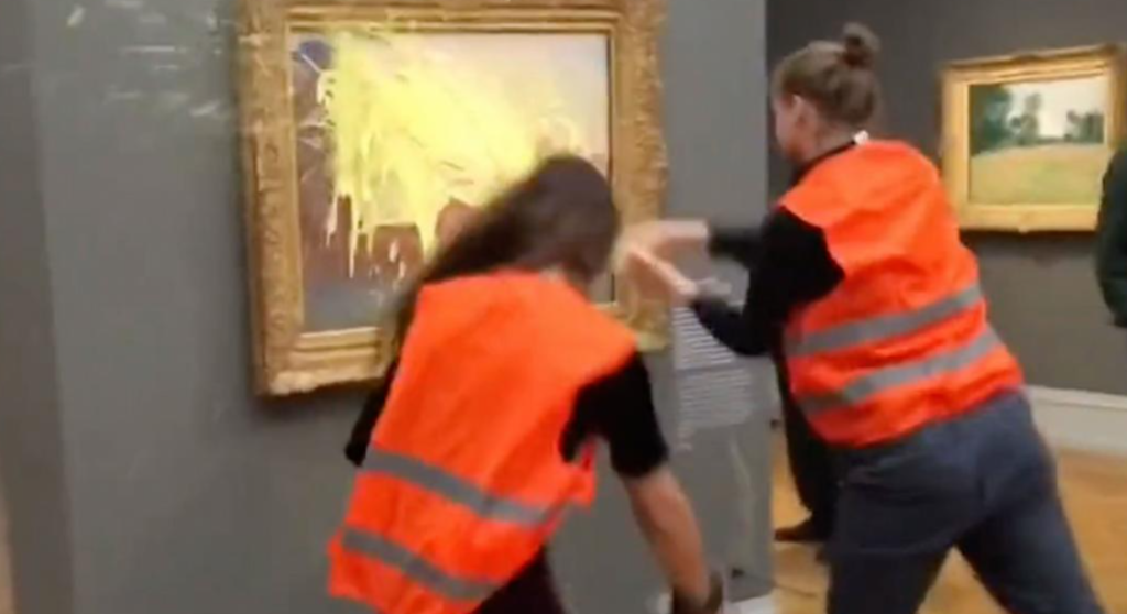 حيث استهدفت مجموعات العمل المباشر في جميع أنحاء أوروبا في الأشهر الأخيرة، الأعمال الفنية الشهيرة لتسليط الضوء على مطالبهم بتغيير سياسات المناخ للبلدان . ومن ضمنها إنهاء مشاريع استخراج الغاز والنفط الجديدة.
