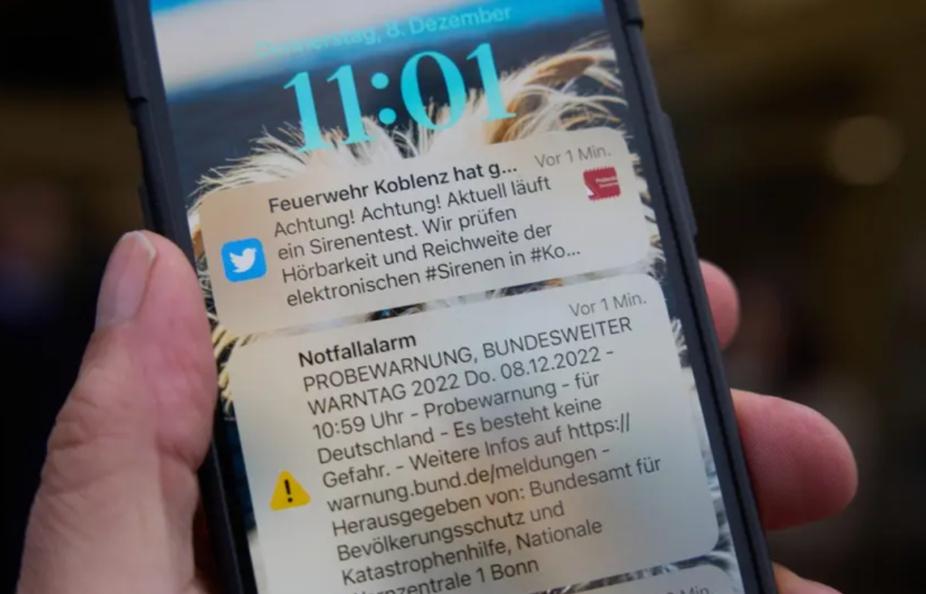 بعد تحديث نظام الإنذار الوطني السابق ، أصبح بإمكان جميع الهواتف المحمولة في ألمانيا تلقي رسائل التنبيه بالكوارث و الطوارئ.