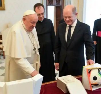 التقى المستشار الألماني أولاف شولتز مع البابا فرانسيس يوم السبت في الفاتيكان.