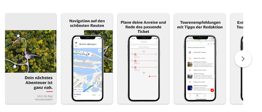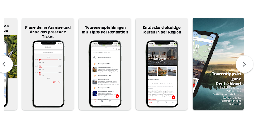 كل ما عليك هو اختيار الجولة التي تعجبك والاستمتاع بالمغامرة، بينما يتكفل التطبيق بكل التفاصيل اللوجستية بدءاً من مسار الرحلة وصولاً إلى وسائل النقل الموصى بها، لذلك فالتطبيق يوفر طريقة مثالية لاكتشاف ألمانيا بسلاسة وبأقل جهد ممكن!
