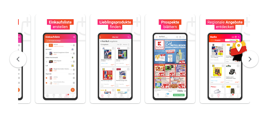 تخيّل تطبيقاً يجمع لك كل العروض والتخفيضات في مكان واحد، دون عناء أو تعب، وهذا بالضبط ما يقدّمه التطبيق “، فبمجرد أن تفتحه ، تجد نفسك أمام أكبر مجموعة من العروض في ألمانيا، تشمل كل شيء من محلات السوبرماركت إلى متاجر الإلكترونيات، وحتى الصيدليات.