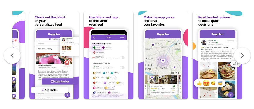 ويُعد HappyCow  مميزاً كونه يوفر تغطية عالمية شاملة تشمل المدن الكبرى والمناطق الصغيرة والنائية، بالإضافة إلى  تقييمات وصور واقعية ومحدثة باستمرار مع تفاصيل دقيقة حول المواعيد والمواقع.