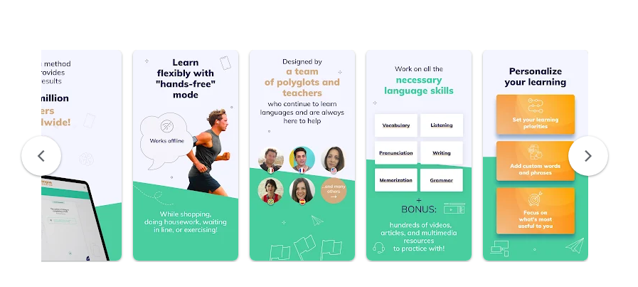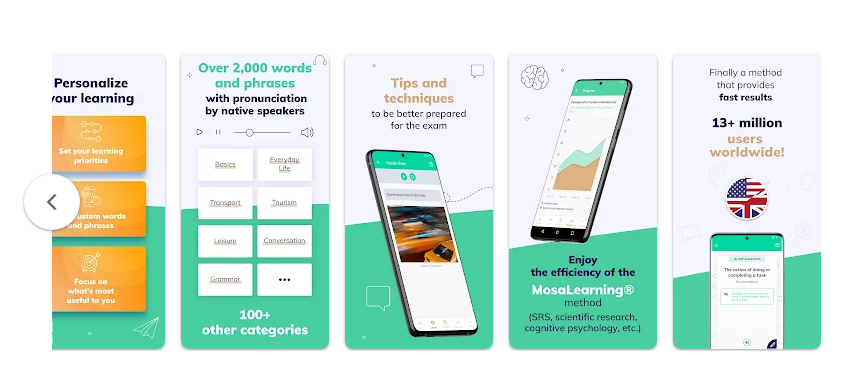 ما يميز التطبيق أنه مبني وفق منهج MosaLingua الذي يركز على الحفظ السريع طويل الأمد بالاعتماد على تقنيات تدريب مثبتة علمياً. وقد حصل التطبيق على تقييمات ممتازة وآراء إيجابية عبر متجر التطبيقات وموقع الشركة، وهو ما يعكس ثقة المستخدمين وفعالية الطريقة التعليمية المقدمة.