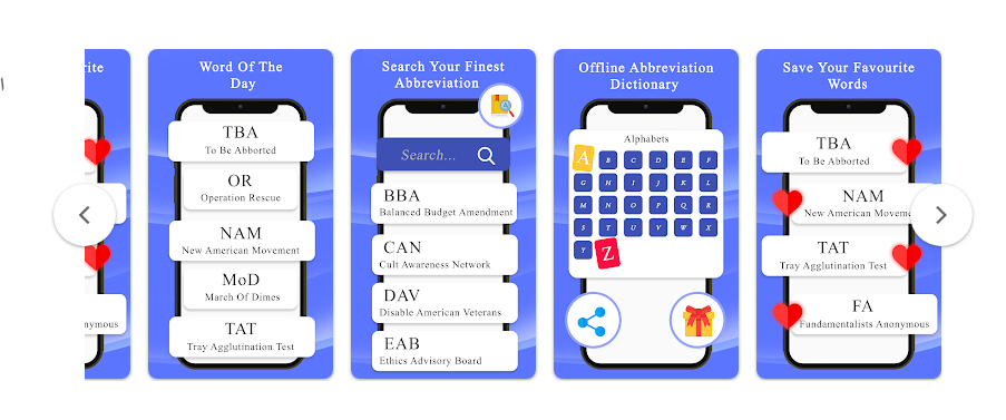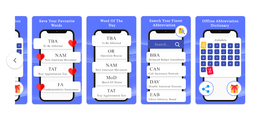 ميزات تطبيق A-Z Abbreviation Dictionary