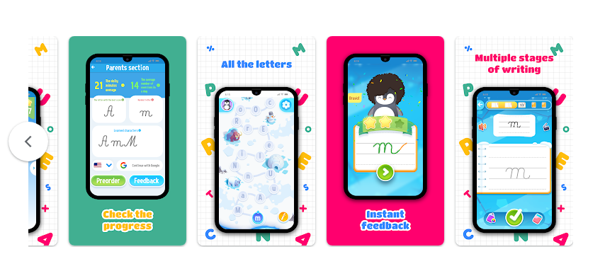 وقد حاز التطبيق على جائزة “أفضل تطبيق تعليمي” في مسابقة Microsoft Imagine Cup لعام 2022، كما يقدّم تمارين كتابة متكيّفة مع مستوى الطفل، بما يضمن تجربة تعليمية مناسبة لقدراته. ويعمل التطبيق على الهواتف المحمولة والأجهزة اللوحية، مع تحقيق أفضل النتائج عند استخدام قلم لمس لتقريب تجربة الكتابة من الأسلوب التقليدي.