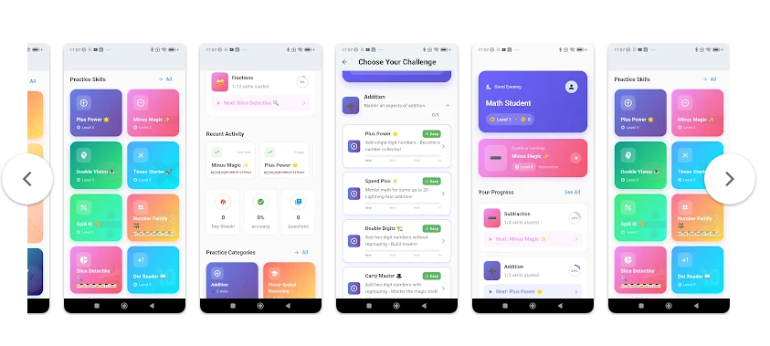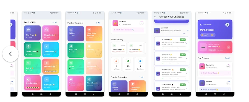 ويبرز التطبيق بتنوع محتواه وشموليته، إذ يضم مجموعة واسعة من المهارات التي تغطي أساسيات الحساب، إلى جانب موضوعات متقدمة مثل الجبر والهندسة، مما يوفّر تجربة تعليمية متكاملة.