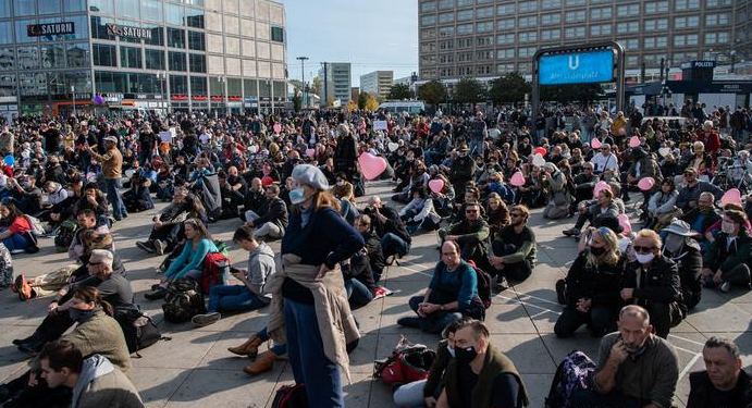 المانيا بالعربي- تجمّع حوالي 2000 متظاهر في ميدان ألكسندر بلاتس في برلين يوم الأحد، للاحتجاج على قيود فيروس كورونا التي فرضتها السلطات مؤخراً . وقالت شرطة برلين إنها نشرت 600 ضابط لتفريق الحشد ، عبر حسابها الخاص على موقع تويتر : “في الغالب ، لم يتم مراعاة الحد الأدنى للمسافة ولا الالتزام بتغطية الفم والأنف”. و رفع المتظاهرون لافتات احتجاجية …